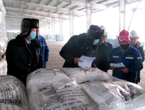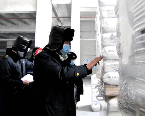 新疆天業(yè)化工產品PVC和固體燒堿是中歐班列主要出口產品,為了便于天業(yè)自產品出疆,石河子出入境檢驗局啟動節(jié)假日“隨報隨檢”模式,由楊曉林局長親自帶隊,天業(yè)股份公司副總經理、物流產業(yè)黨委書記嚴健全程參與,到天業(yè)化工生產一線審驗產品包裝、批號,取樣抽檢產品質量,做到監(jiān)管到位、檢驗到位,據悉,當天石河子出入境檢驗局受理出口燒堿報檢共10批次,重量1500噸,金額近80萬美元。